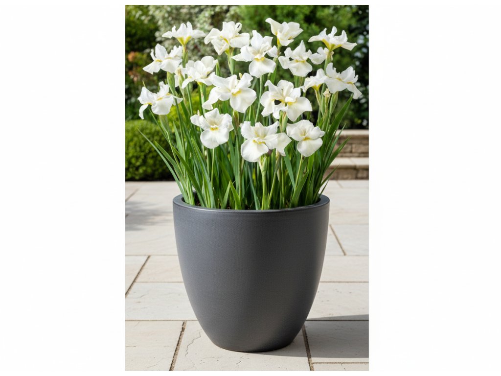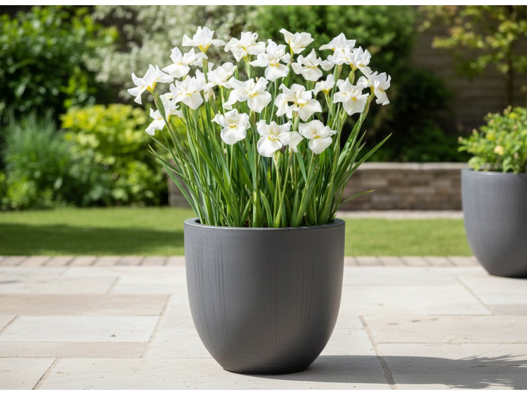 Kosatec 'Gull´s wing' v květináči