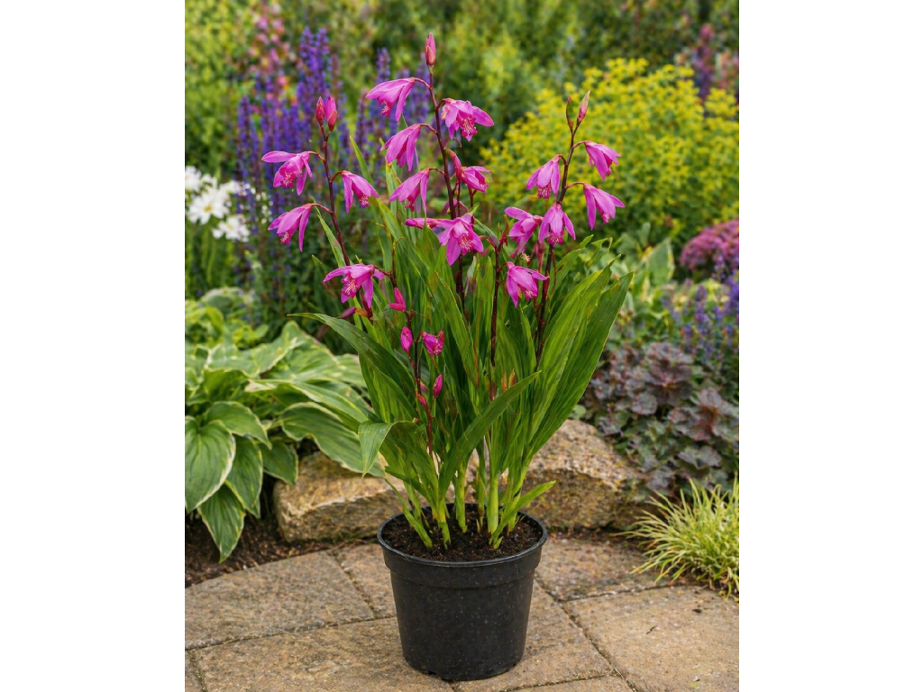 Orchidej vzpřímená ‘Striata Pink’ (Bletilla striata) v květináči je elegantní a nenáročná trvalka, která okamžitě upoutá svými jemně růžovými květy s výrazným žilkováním. Tato zahradní orchidej (Bletilla striata) je ideální volbou pro milovníky exotických rostlin, kteří chtějí dodat svému prostoru nádech výjimečnosti – ať už na terase, balkoně nebo v zahradě.
