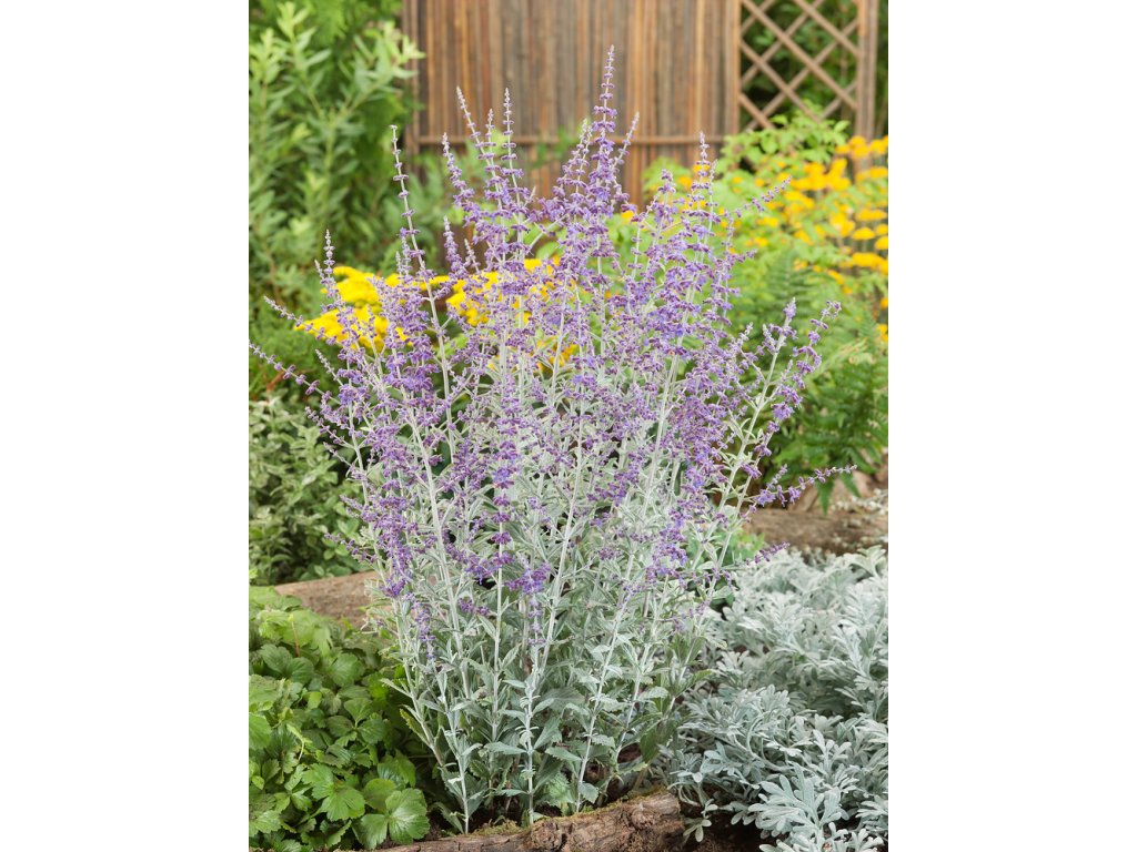 Perovskie lebedolistá 'Silvery Blue' (Perovskia atriplicifolia 'Silvery Blue') je okouzlující opadavý polokeř s charakteristickými stříbrnými listy a voňavými modrofialovými květy. Dorůstá do výšky 50 cm a vytváří kompaktní keř.