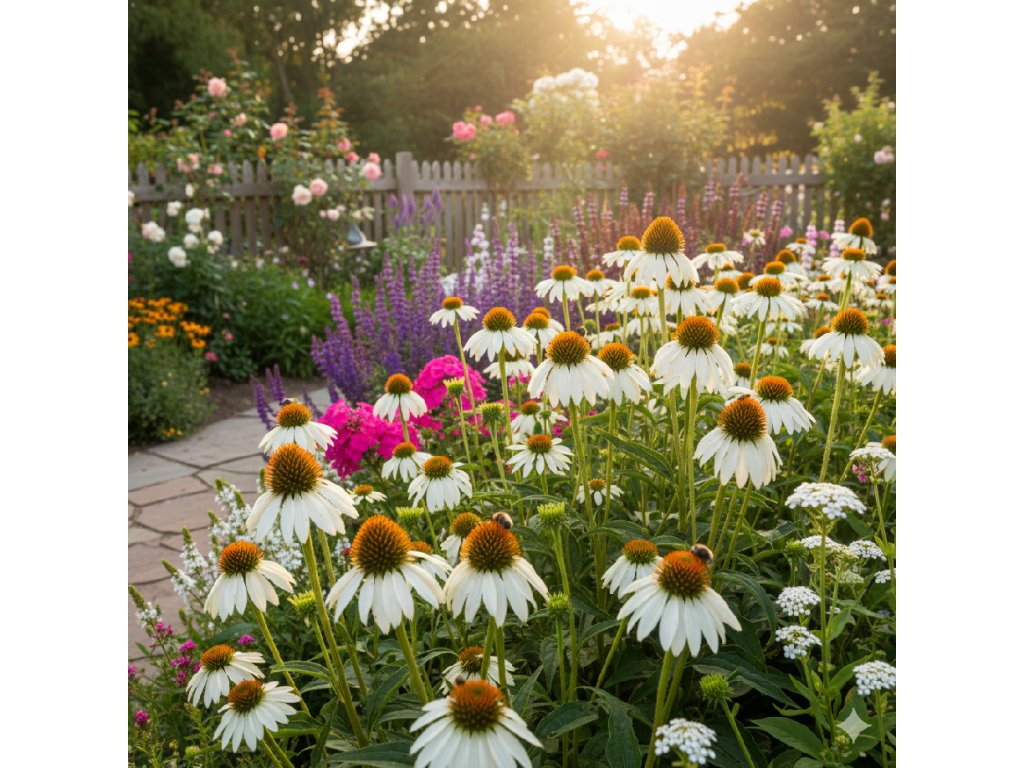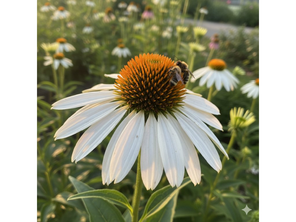 Třapatkovka Echinacea 'White Swan' (Echinacea purpurea 'White Swan') je mohutná, nenáročná trvalka s výraznými květy v jemných tónech. Bílé okvětní lístky kolem žlutooranžového kuželovitého terče nápadně připomínají kopretinu. Třapatkovka dorůstá výšky 70–100 cm a kvete od července až do září. Vynikne ve smíšených trvalkových záhonech, je vhodná k řezu i do suchých aranžmá.