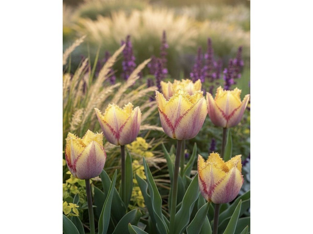 Tulipán 'Colour Fusion' přináší do vaší zahrady jedinečnou kombinaci barev, která vytváří ohromující zář, která promění vaši zahradu v živou verzi uměleckého díla. Třepenité tulipány patří mezi velmi oblíbené druhy.
