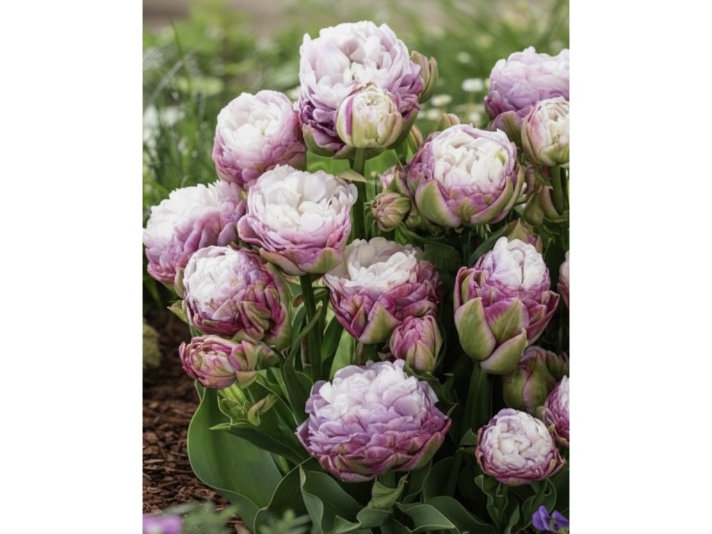 Tulipán (Tulipa) 'Peggy Wonder' je jedinečným zástupcem svého druhu s zelenými okvětními lístky s levandulovým lemem, který obklopuje vnější okvětní lístky květu. Vnitřní okvětní lístky směřují k středu a mají krásnou levandulovou barvu. Každý stonek nese více květů, což činí tuto odrůdu ideální pro čerstvě řezané květinové aranžmá. Stonky jsou silné a robustní, což zajišťuje, že květy pevně stojí a dobře snášejí jakýkoliv vítr.