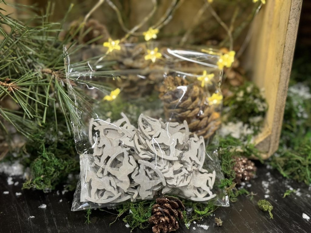Sada dřevěných ozdob ve tvaru koníků vynikne v každé zimní i vánoční dekoraci.