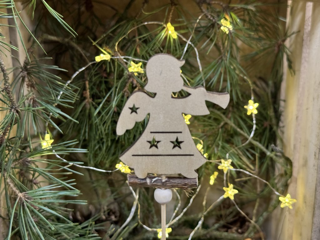 Zapichovací ozdoba s andělem s trubkou působí velmi jemně a elegantně. Skvěle doplní vaše zimní a vánoční dekorace.