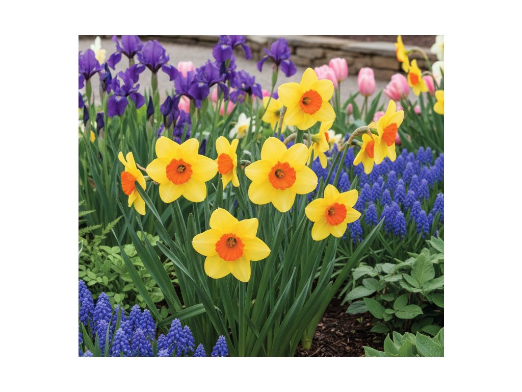 Skvostem vaší zahrady se stane vznešený a vysoký narcis (Narcissus) 'Kedron', který se pyšní výrazným středem (korunou) v nádherném oranžovém odstínu. Tento narcis okamžitě poutá pozornost svými velkými okvětními lístky, které vytvářejí dokonalý kontrast s oranžovým středem, a představuje tak opravdový květinový skvost.