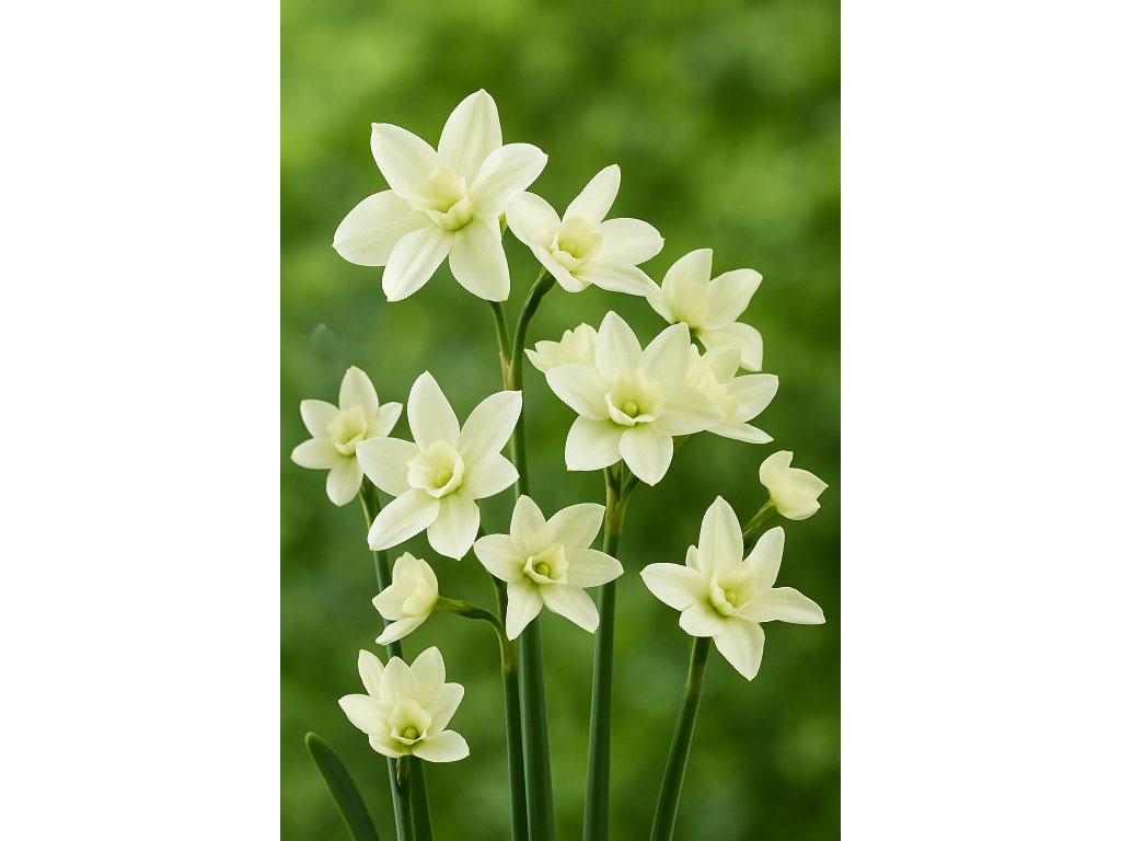 Narcis (Narcissus) ‘Polar Hunter’ je nádherný plnokvětý narcis s čistě bílými květy a jemným zeleným nádechem ve středu, který působí elegantně a moderně. Má husté, bohatě vrstvené květy, které upoutají pozornost a dodají záhonům luxusní vzhled.