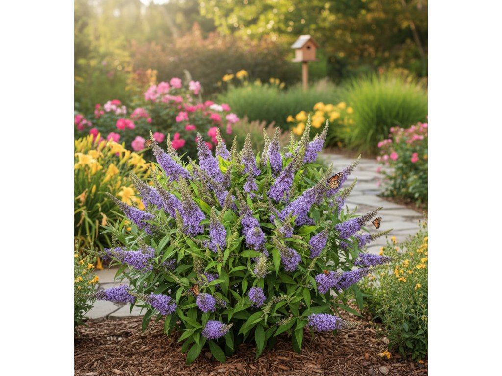 Moderní zakrslá odrůda komule, která vyniká bohatými lila až fialovými květy uspořádanými do krátkých, hustých klasů. Kvete dlouho – od léta až do podzimu – a je mimořádně atraktivní pro motýly, včely i další opylovače. Díky malému vzrůstu je ideální do menších zahrad, předzahrádek, nádob i městských výsadeb.