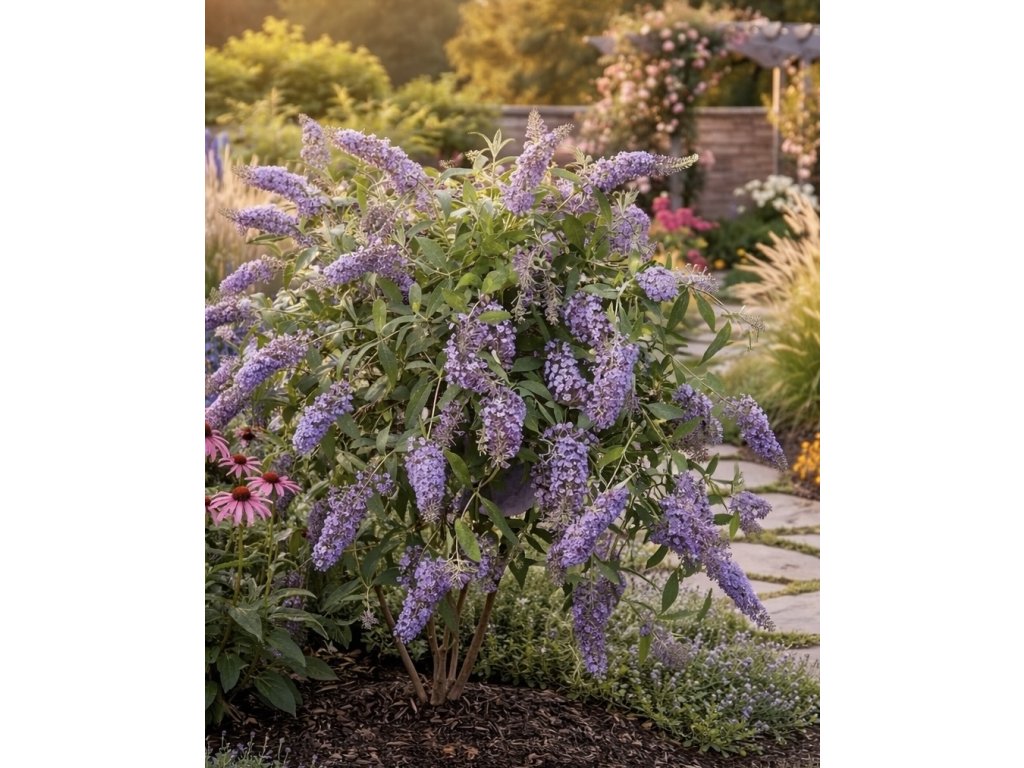 Zakrslý motýlí keř (Buddleja 'Sweetheart Lila') je kompaktní odrůda dorůstající do výšky 60–80 cm, což z něj činí skvělou volbu pro malé zahrady, balkóny nebo nádoby. Tento keř okouzlí svými jemně fialovými květy, které kvetou od července do října a přilákají do vaší zahrady množství motýlů, což vytváří krásný a živý efekt.