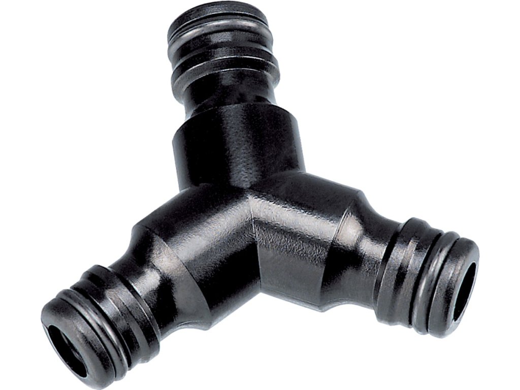 Třícestná spojka slouží k propojení tří libovolných hadic za pomocí tří rychlospojek se systémem Quick - click (je korozivzdorná - bez kovových částí a nárazuvzdorná, odolná UV záření a vysokému tlaku - více jak 40 barů).